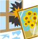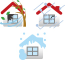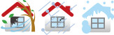 - 台風で窓ガラスが割れてしまい、雨が降りこんできて建物や家財が損害を受けた。