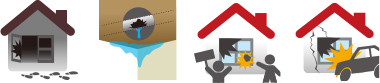 | 日常災害リスク | 盗難、給排水設備の事故による水濡れ、建物外部からの物体の衝突等、労働争議に伴う破壊行為等による損害 | ![]() |